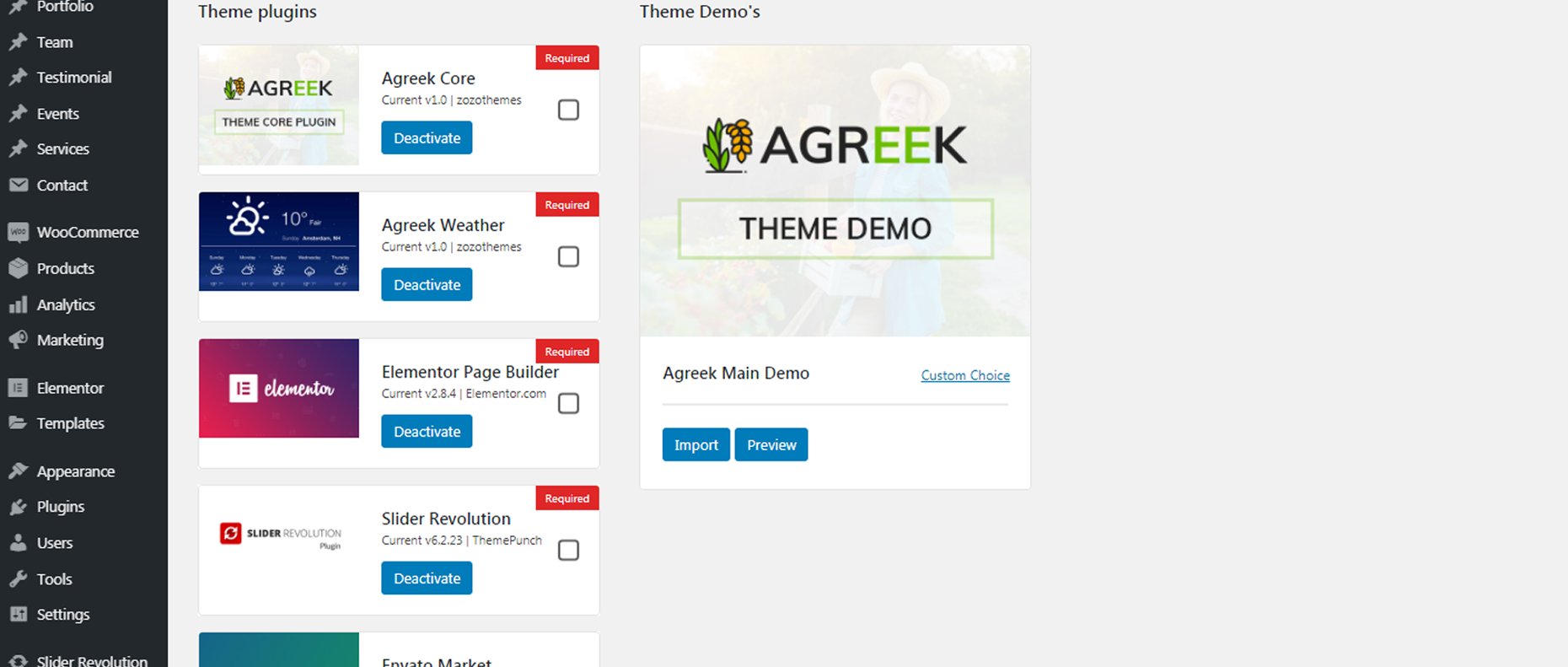 Plugin Installation: Admin Dashboard –>> Agreek –>> Plugins –>> Install and Activate All required plugins.