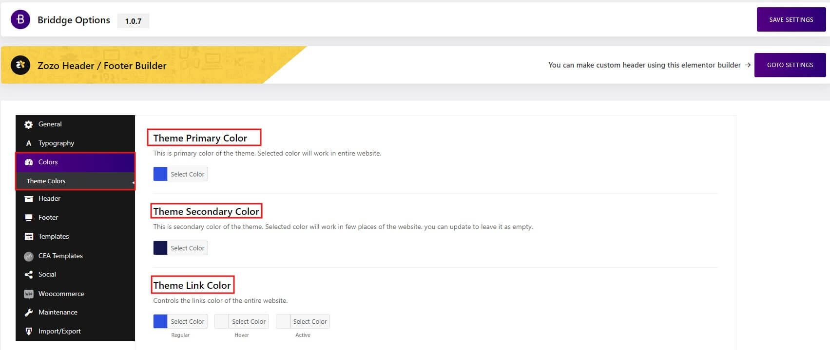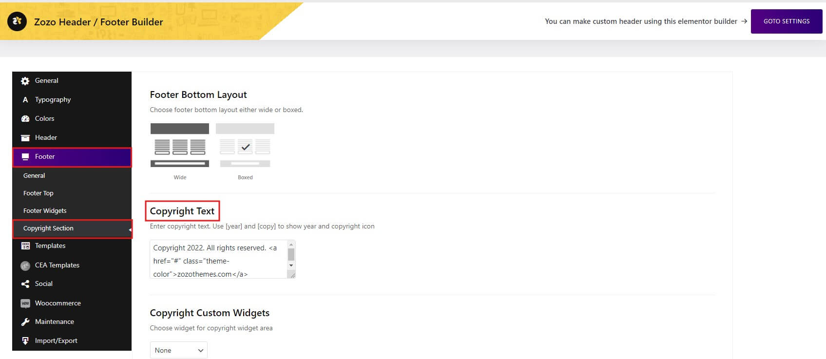 - Zozo Header Footer(required)