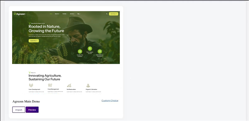 To import the demo go to Theme Panel (WP Dashboard) > Agrezen > Demo Importer.