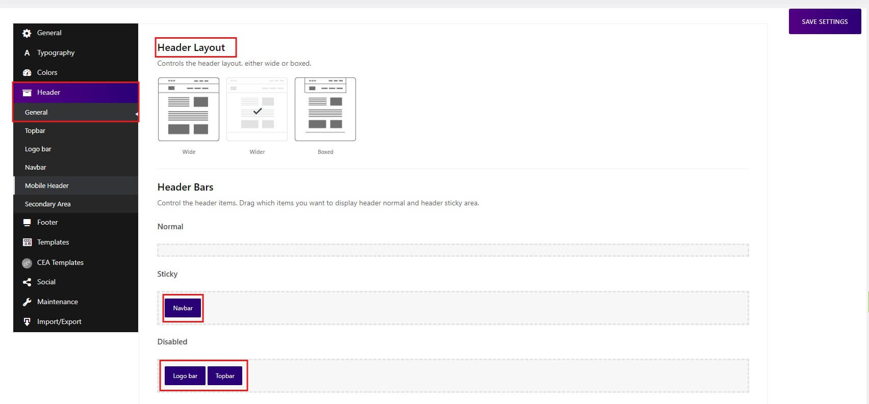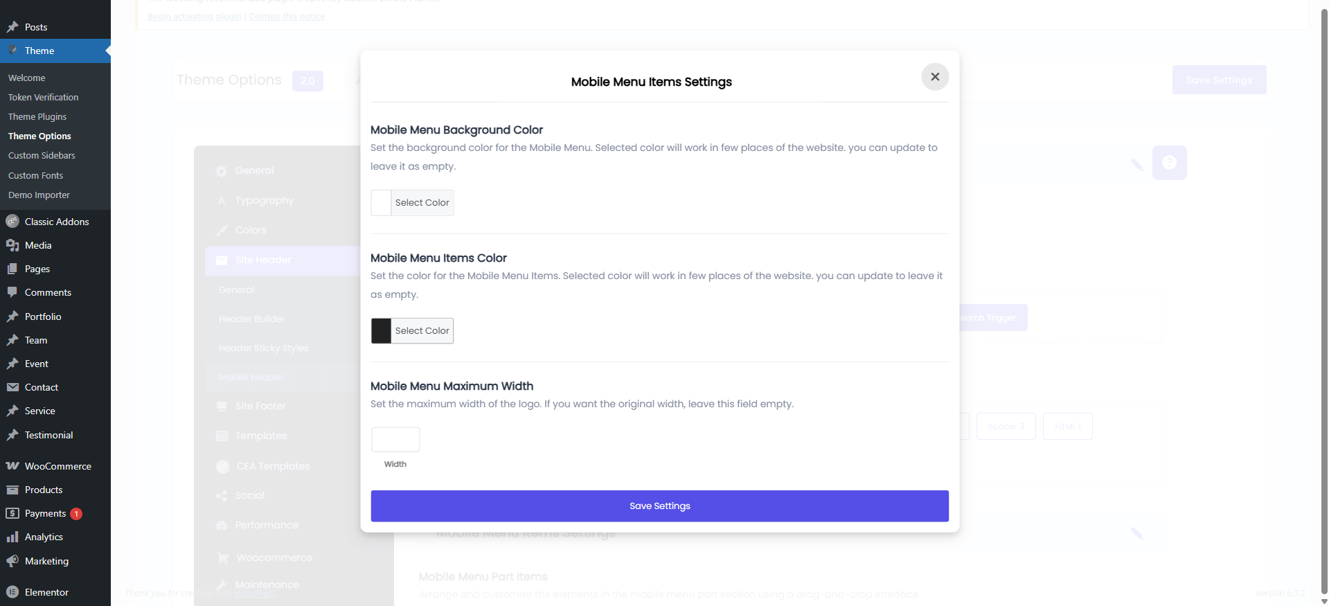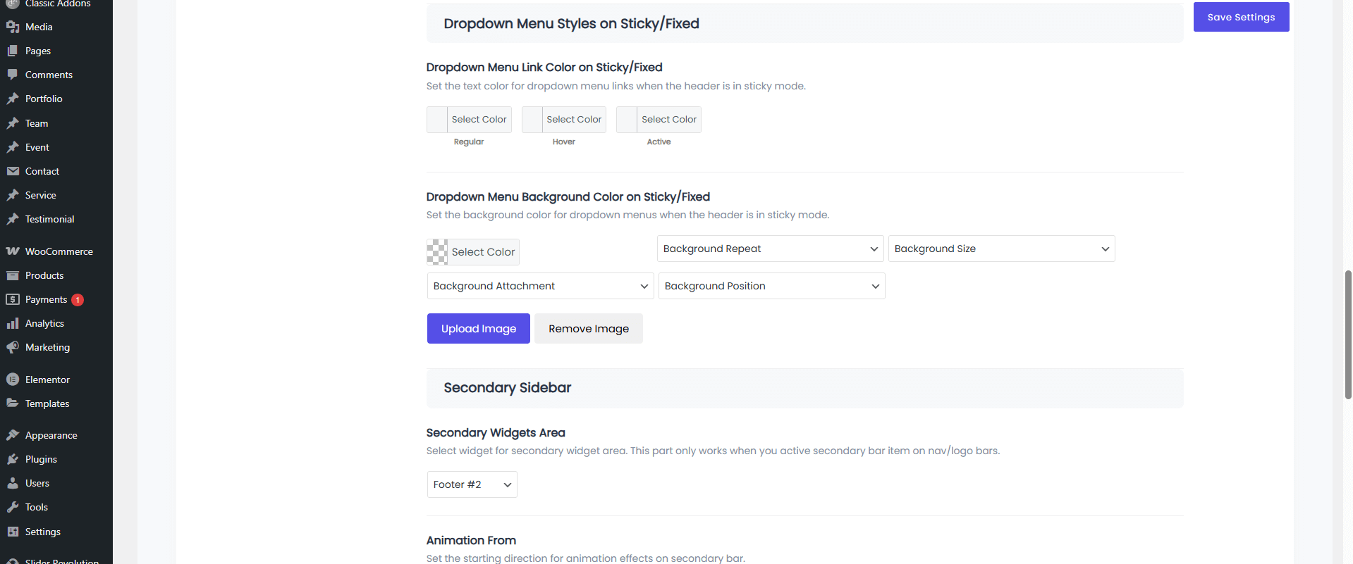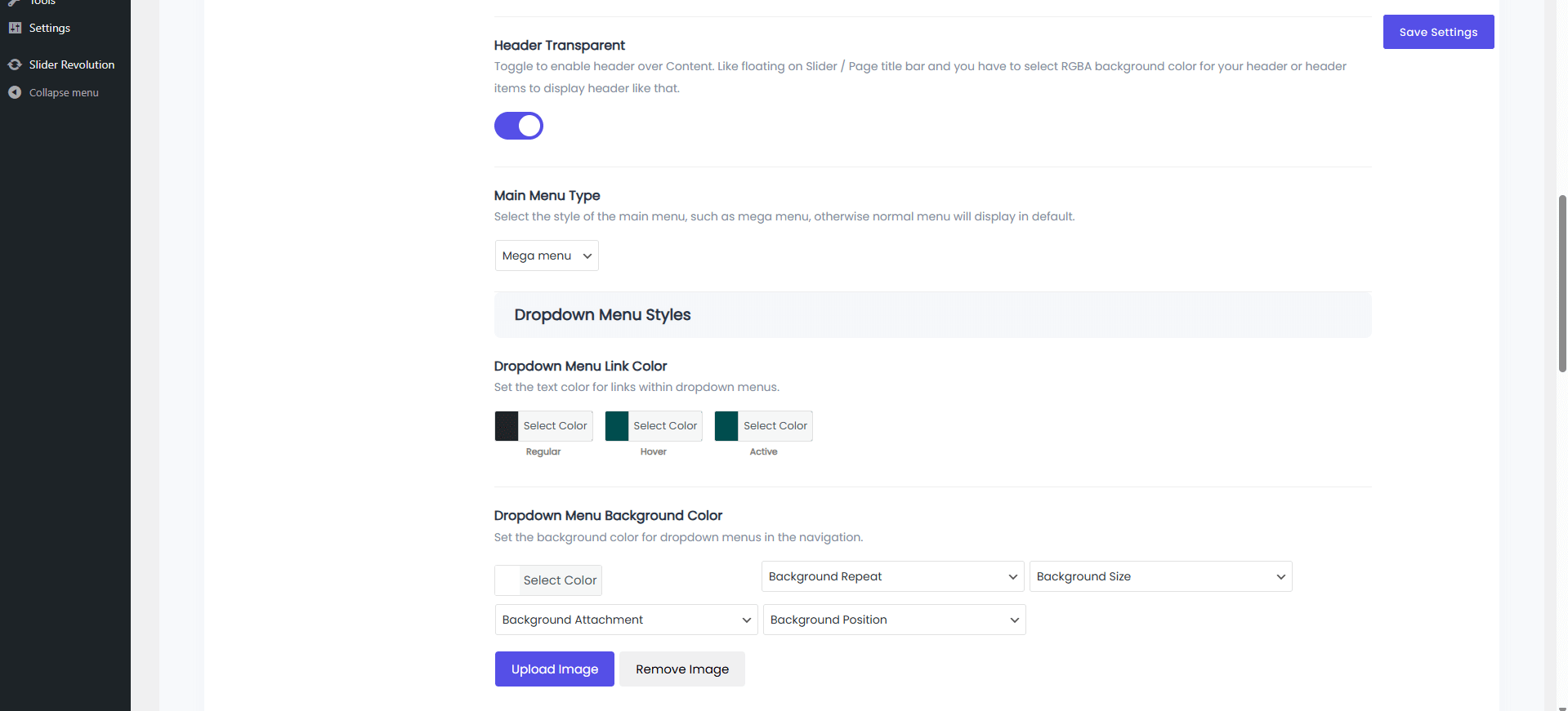 Menus Settings: