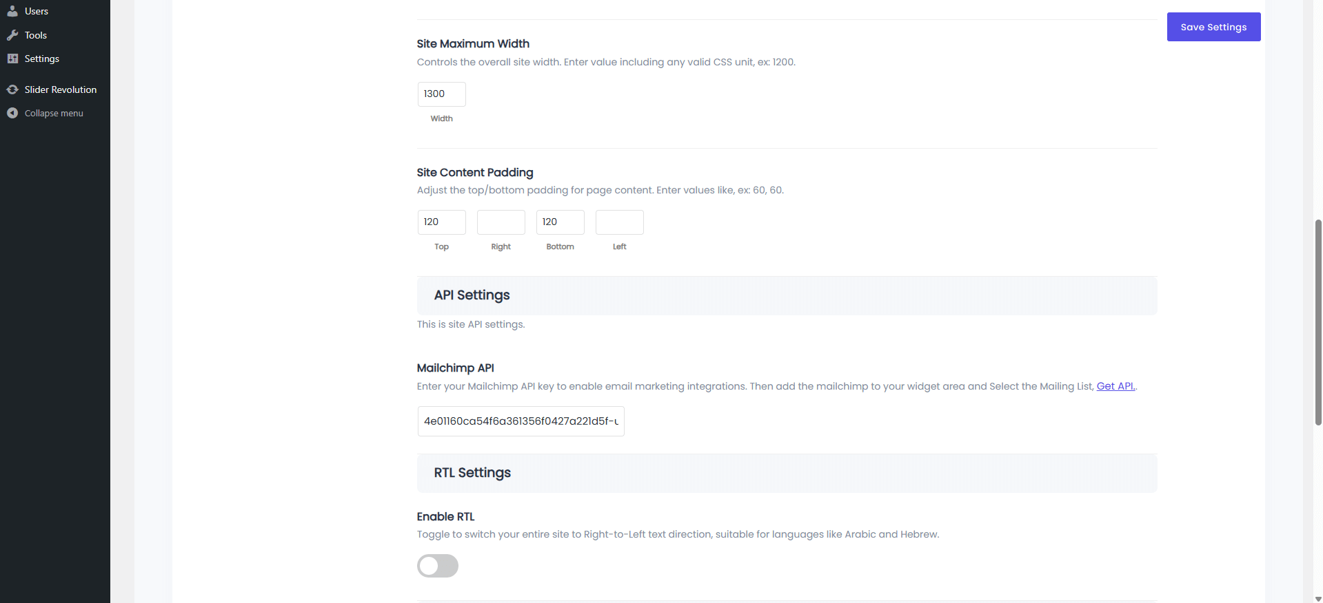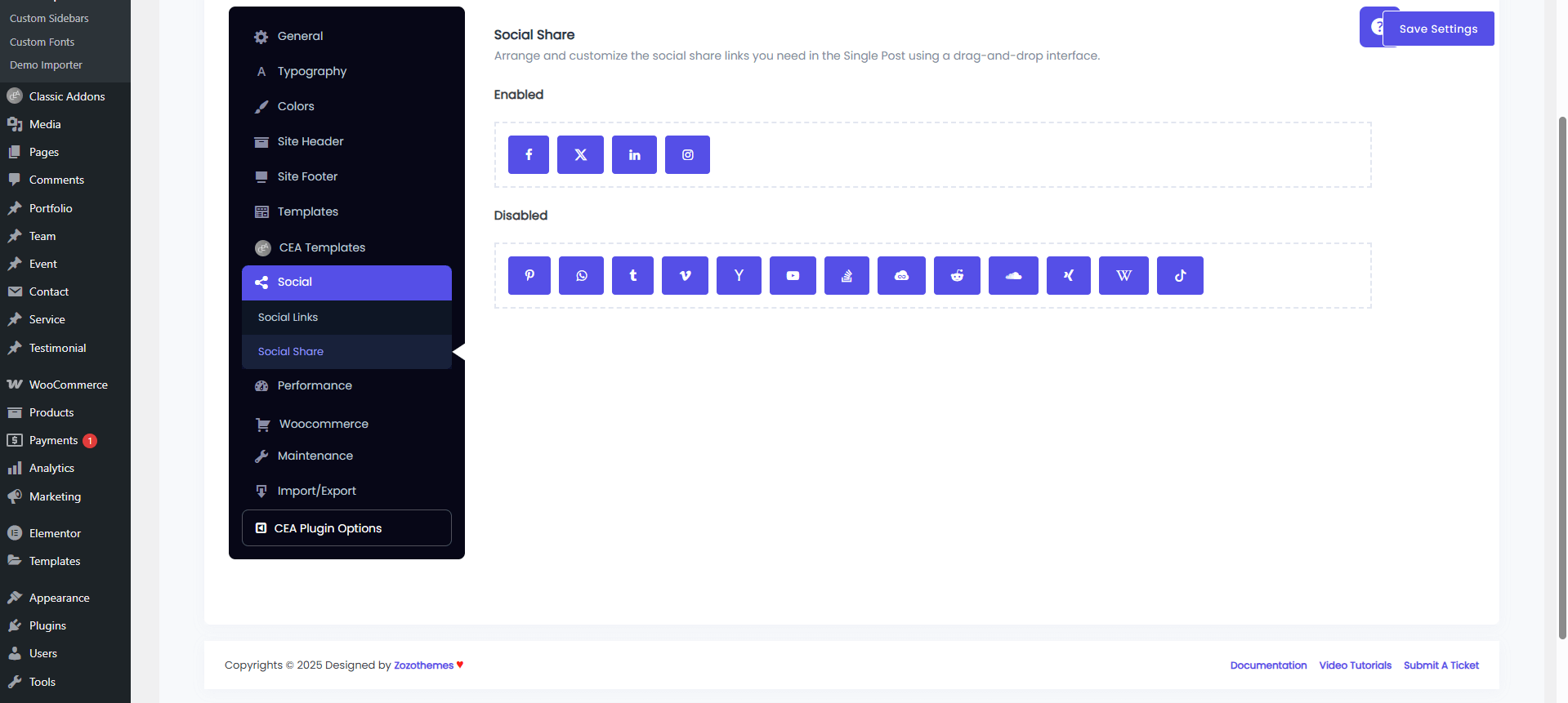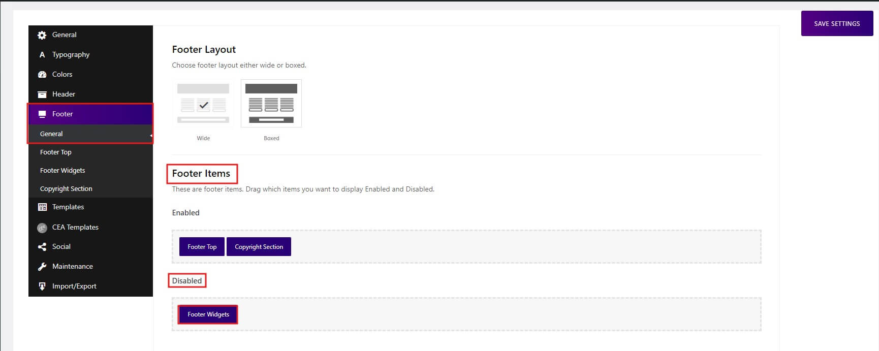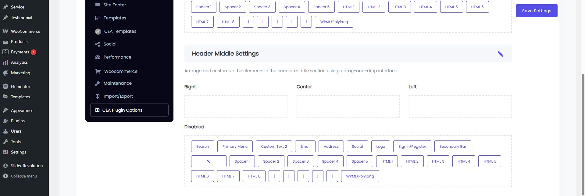 Menus Settings: