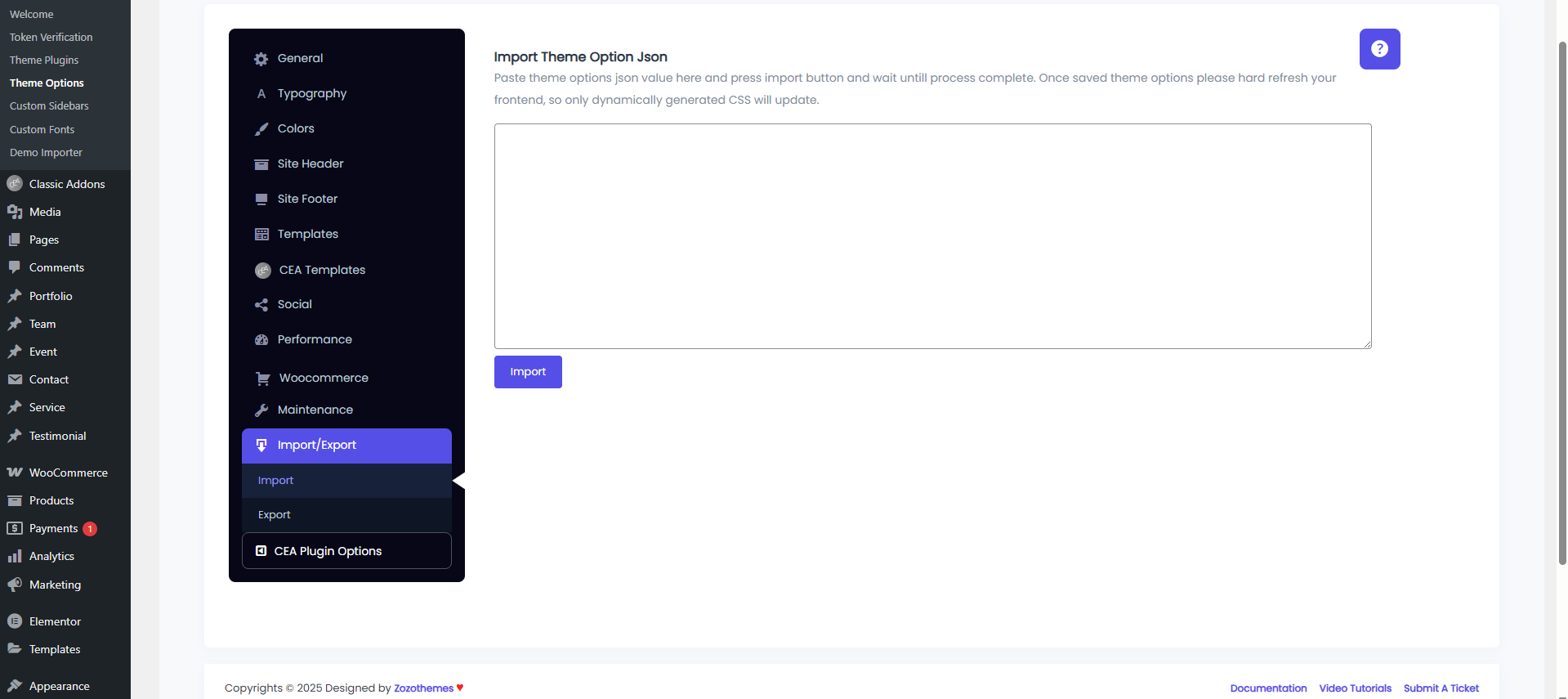 Theme Options Import:
