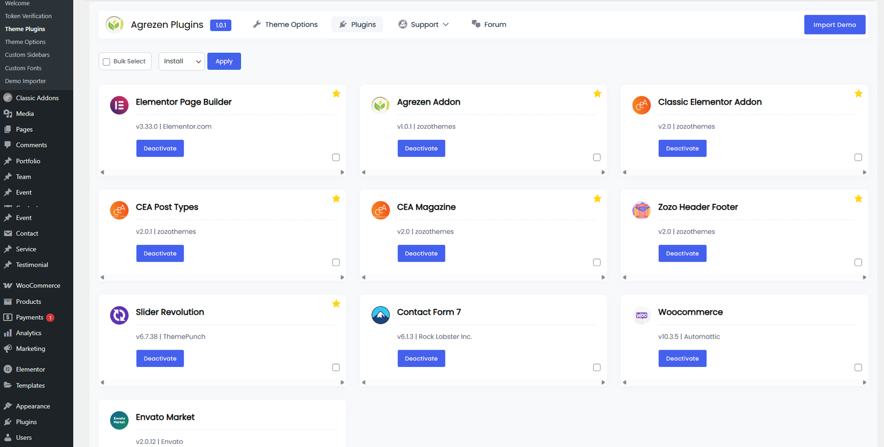 Plugin Installation: Admin Dashboard –>> Agrezen –>> Theme Plugins –>> Install and Activate All required plugins.