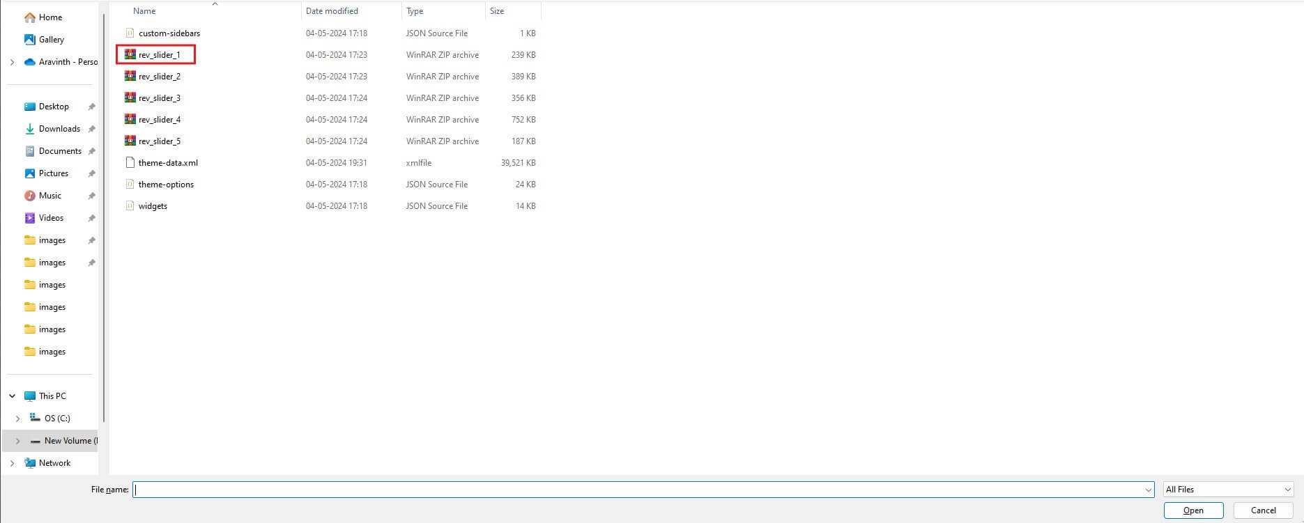 Manual Import Files: All files you get from Envato market, click and download like the below image.