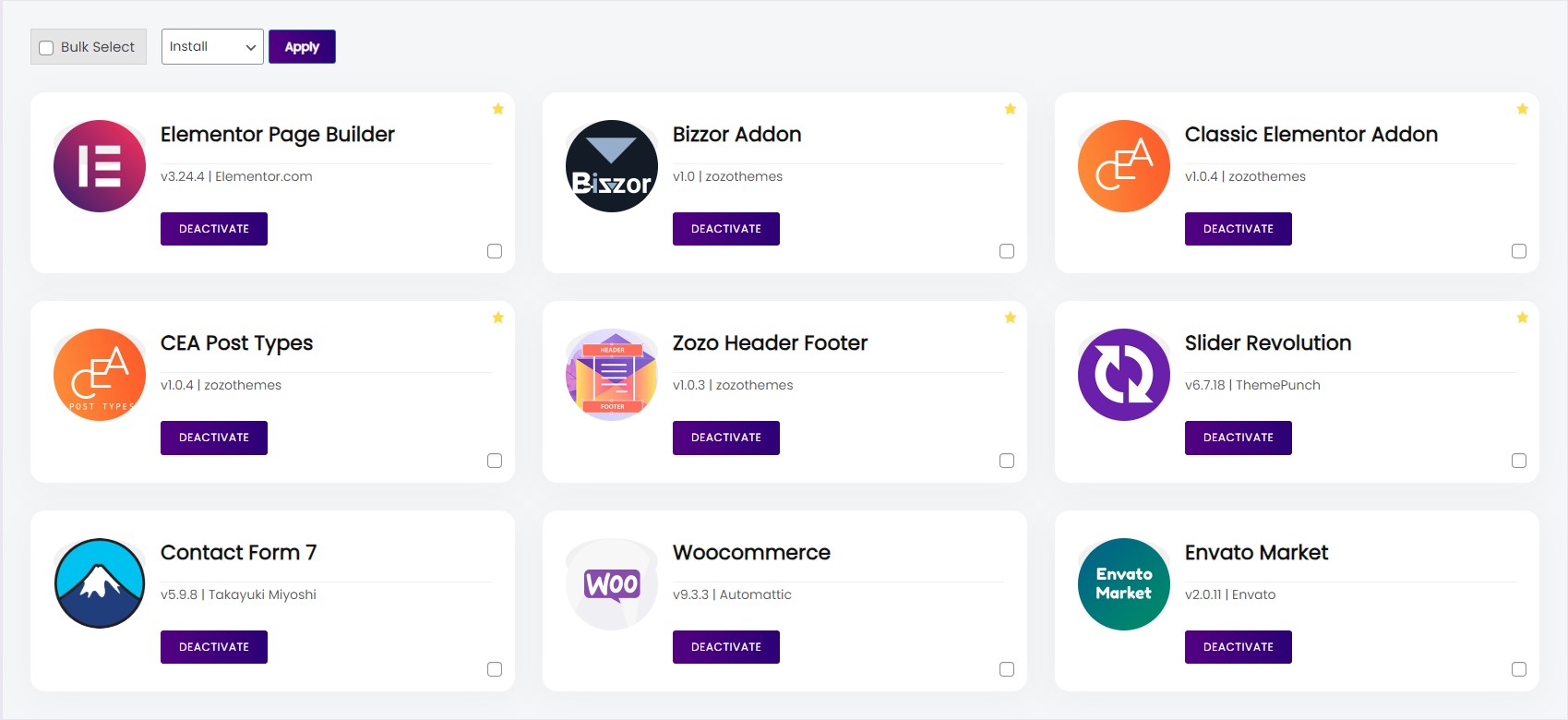 Plugin Installation: Admin Dashboard –>> Bizzor –>> Theme Plugins –>> Install and Activate All required plugins.
