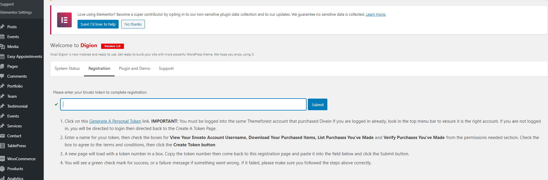Plugin Installation: Admin Dashboard –>> Digion –>> Plugins –>> Install and Activate All required plugins.