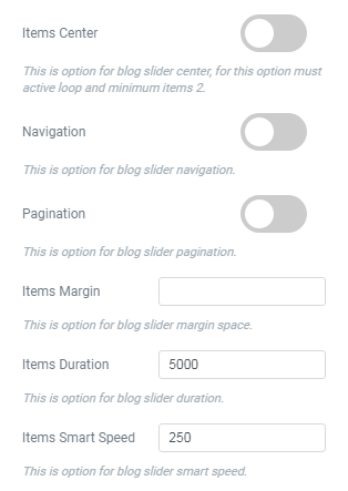 - Items Smart Speed- This is an option for testimonial slider smart speed.