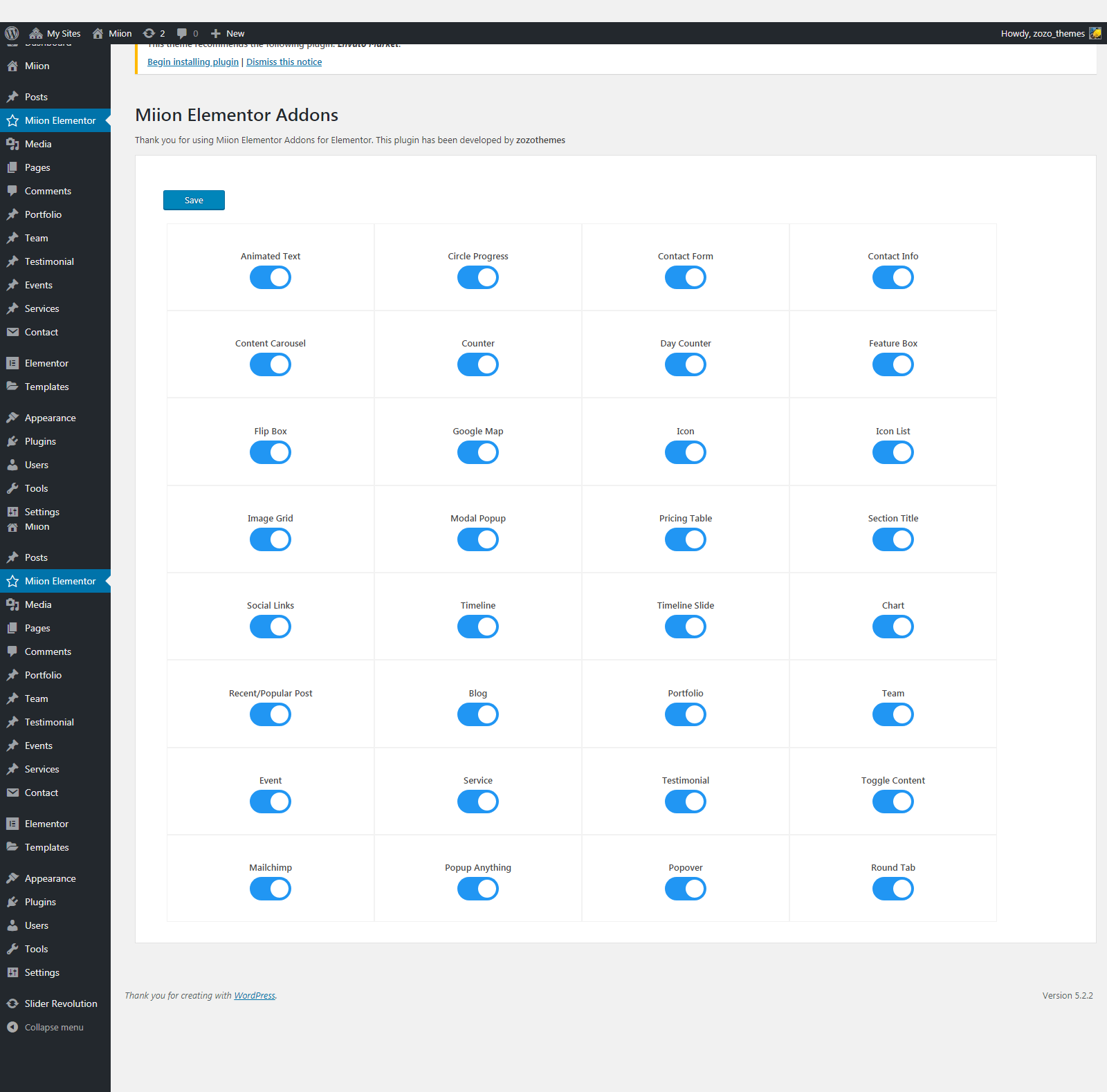 Below is the list of the plug-ins that come included into the theme.