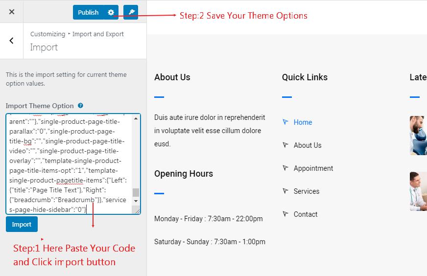 Demo import will enable you to import all media files, pages, theme options, and plug-in settings.