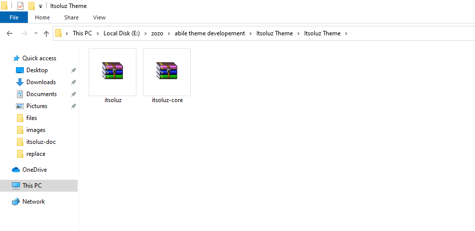itsoluz.zip file and ONLY use the extracted /itsoluz theme folder.