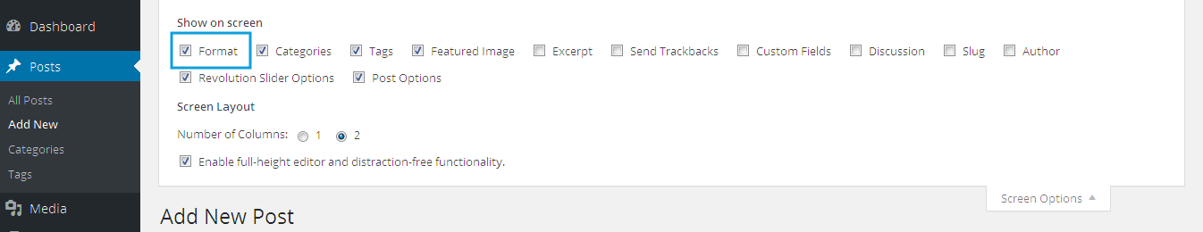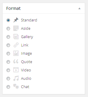 The Post Formats feature provides a standardized list of formats that are available to all themes that support the feature and the Post Formats are listed below.