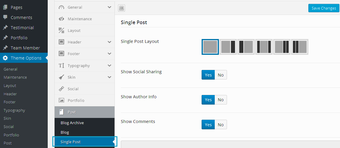 Single Post Layout – This option allows you to select the layout for Blog Single Post.