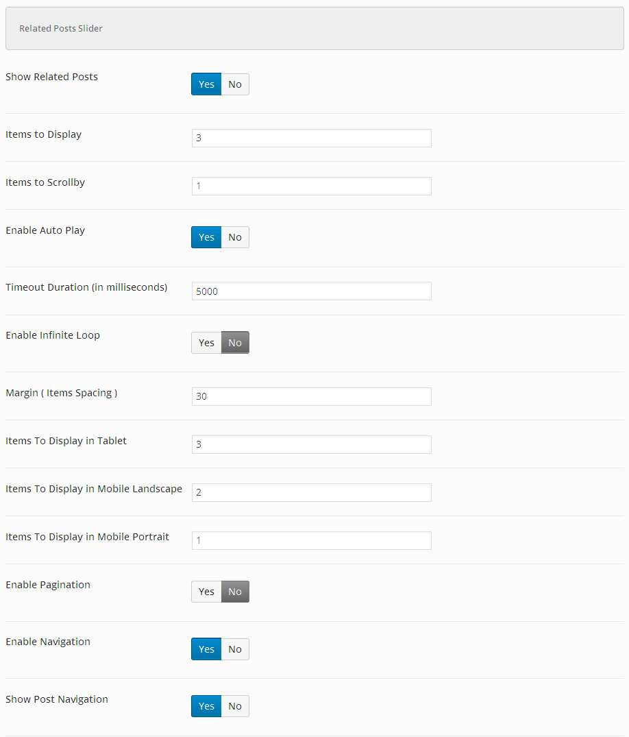 Enable Infinite Loop – You can enable/disable the Loop option for Related Post Slider.