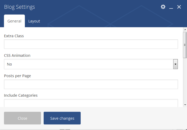 Click on Blog Options in Theme Addons tab, The Blog Settings Shortcodes window will open.