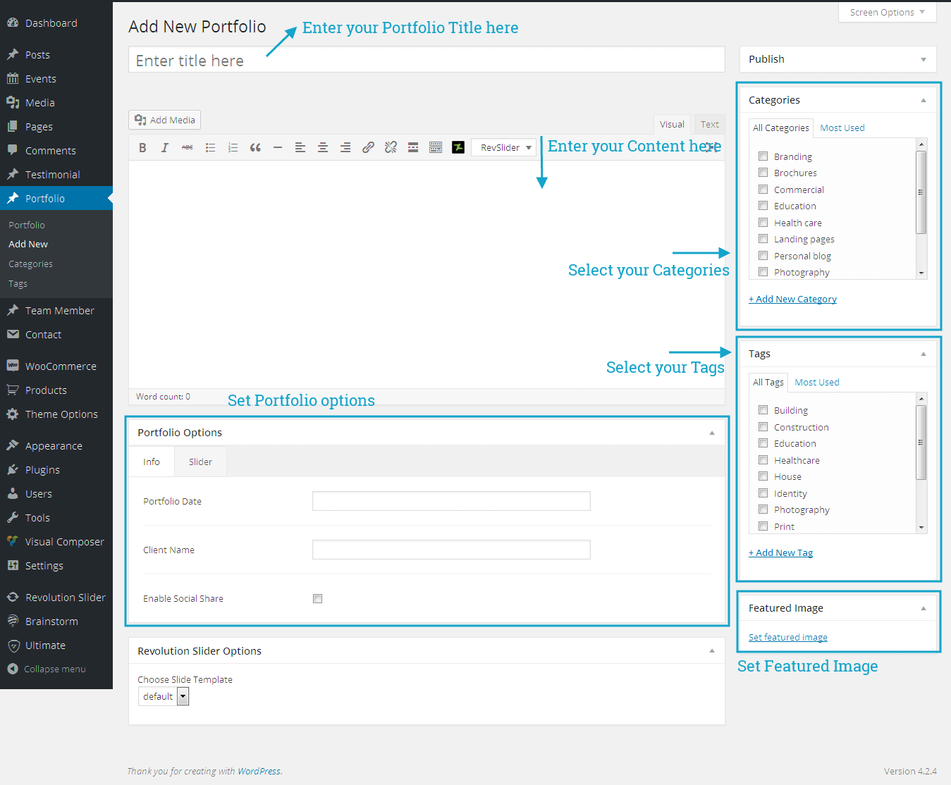 To upload Feature Image for the Post, click the Set Featured Image option, select an image and click Set Featured Image button.