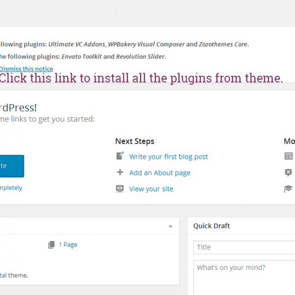 After activating the theme a notice should appear on the top of the screen, click on begin installing plugin and install the Plugins given in this theme.