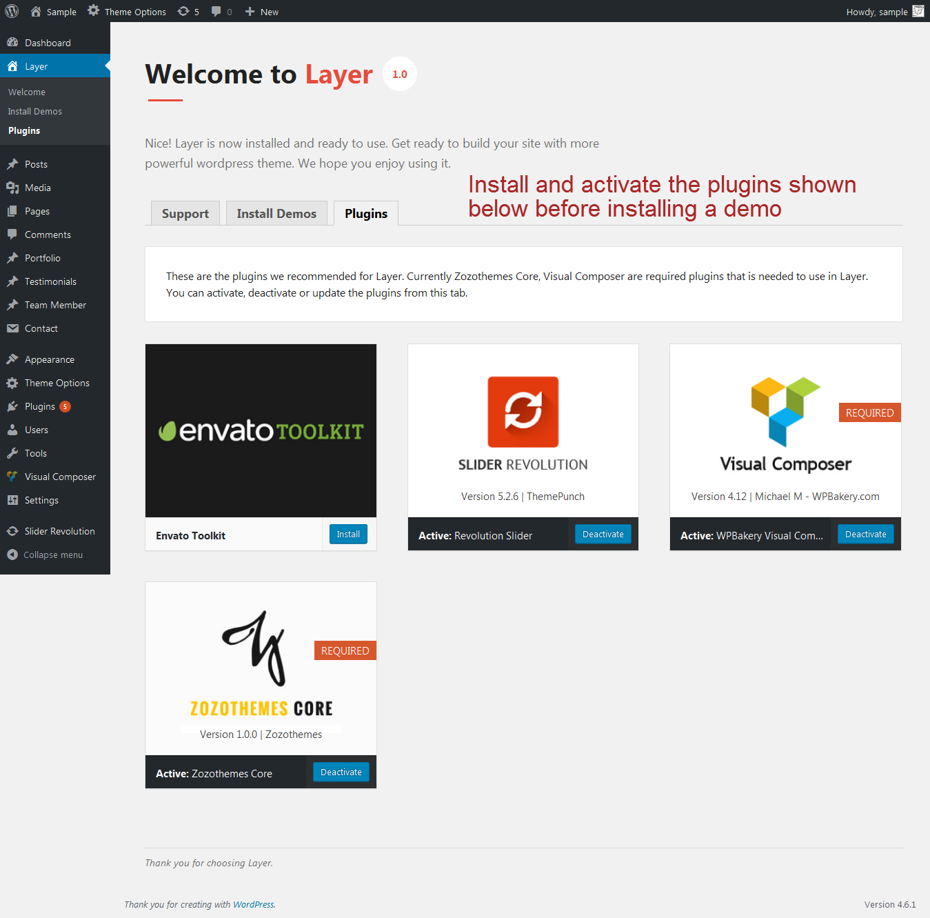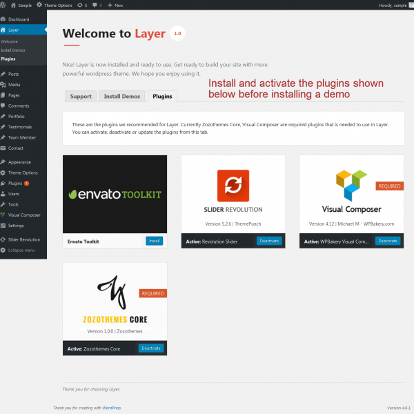 Currently Zozothemes Core and Visual Composer are required plugins that is needed to use in Layer.