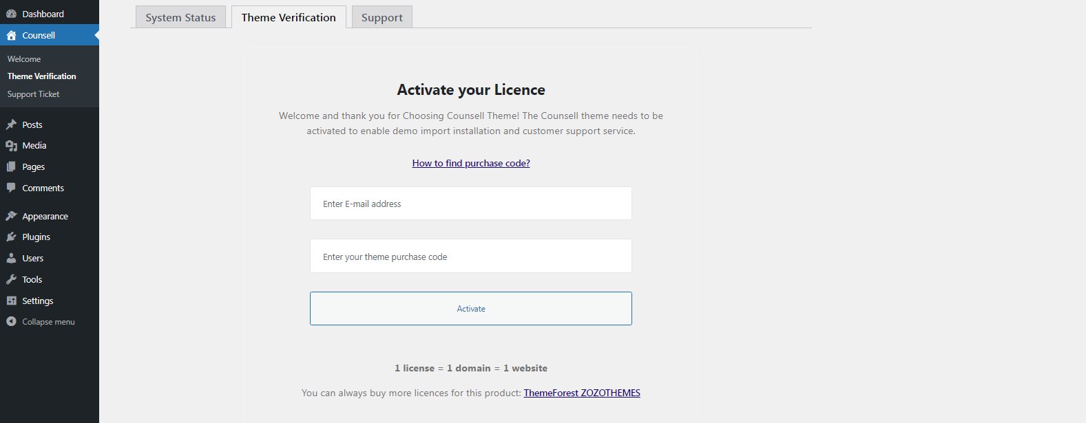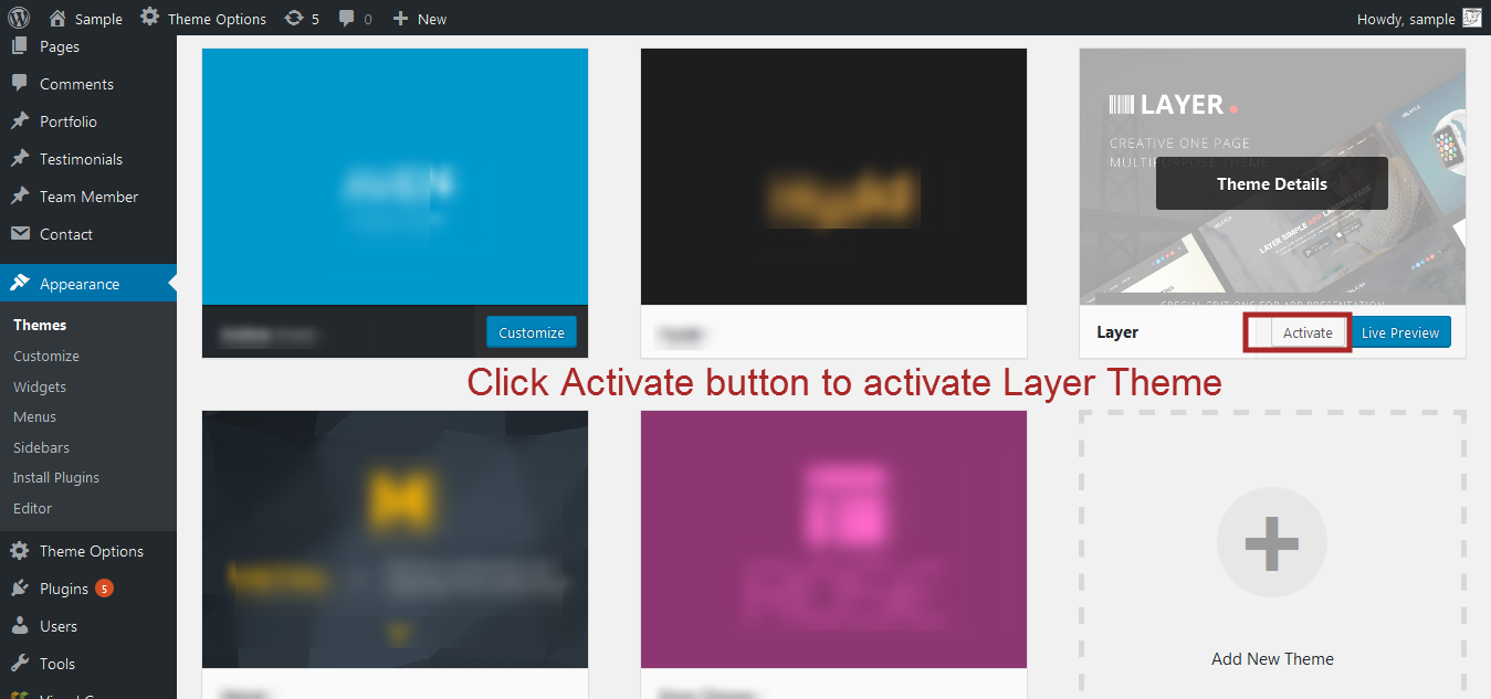 Activate the newly installed theme by going to Appearance > Themes and clicking the Activate button.
