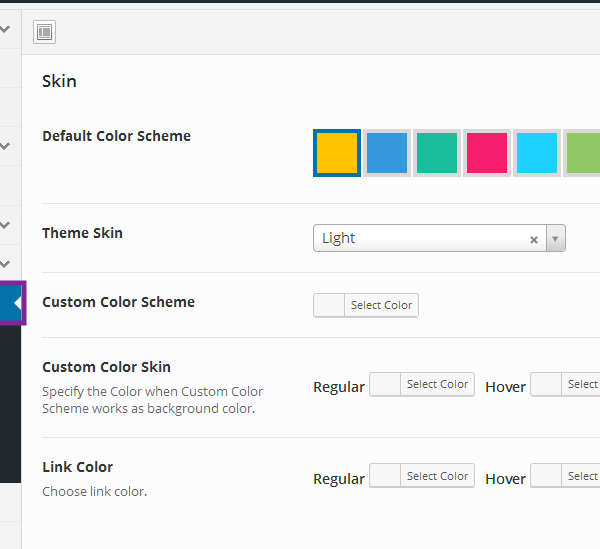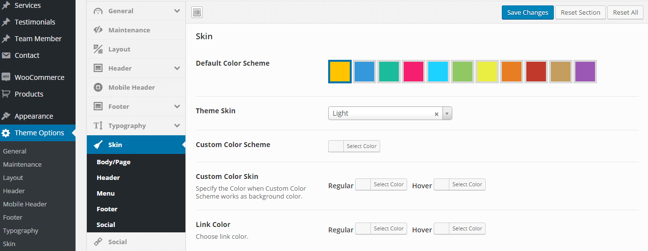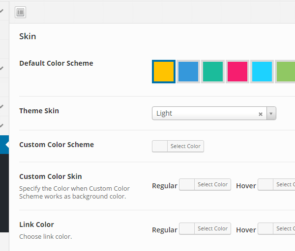 Skin – You can choose the default color schemes, theme skin and set the colors for the body, header, menu, footer.