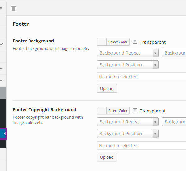 Footer – Footer option allows you to enable/disable the footer and select its background options.