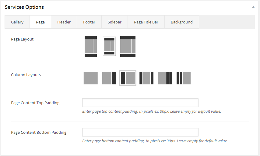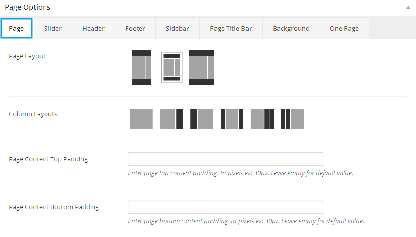 Page Content Bottom Padding – Enter page bottom content padding. In pixels ex: 30px. Leave empty for default value.
