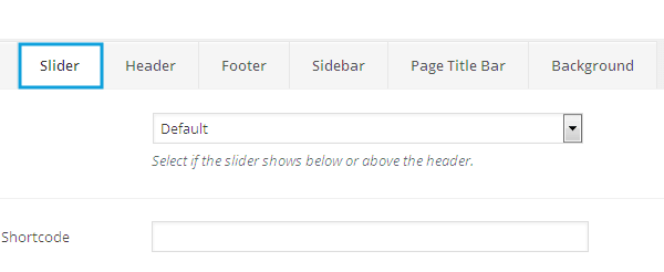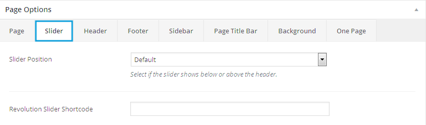 Slider – These options allow you to select the slider on the current page. It allow you to select a slider and set it’s position.