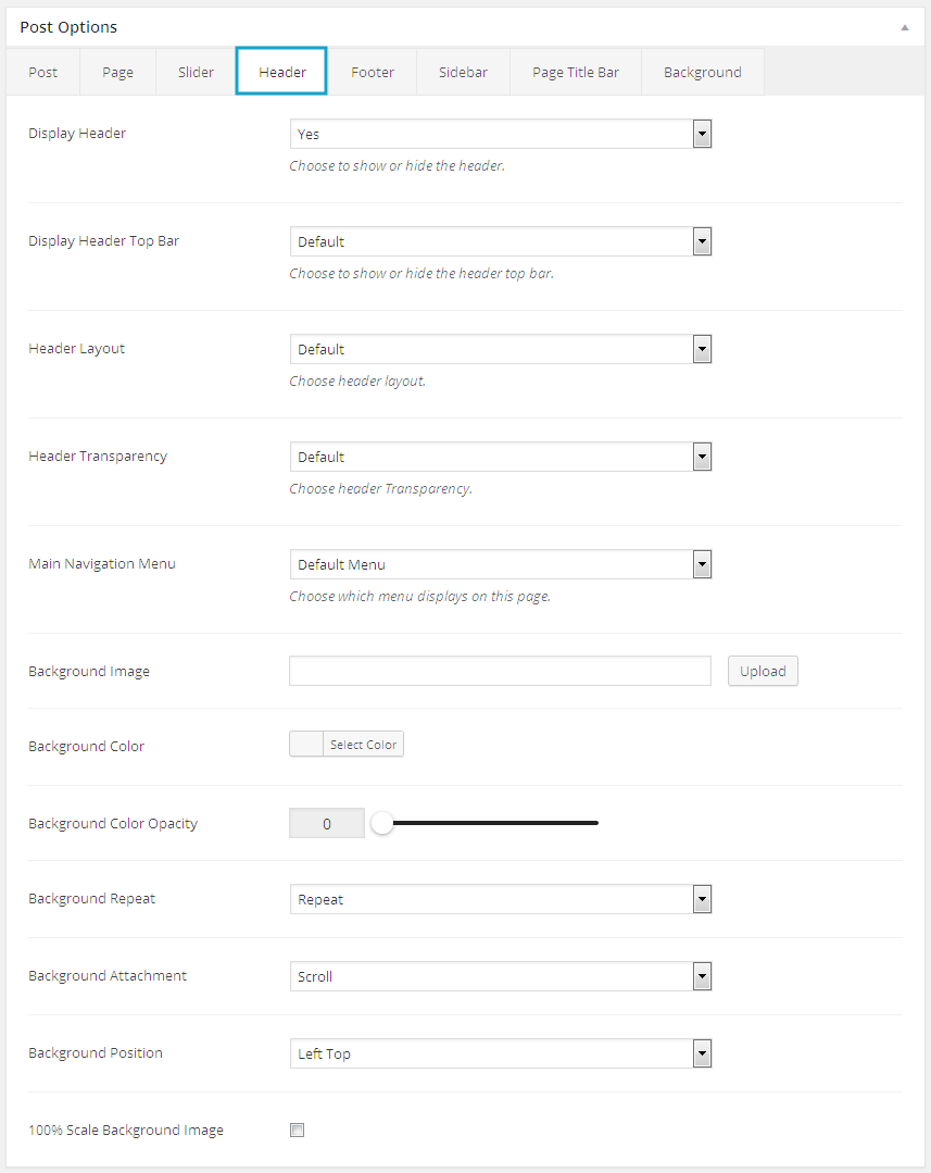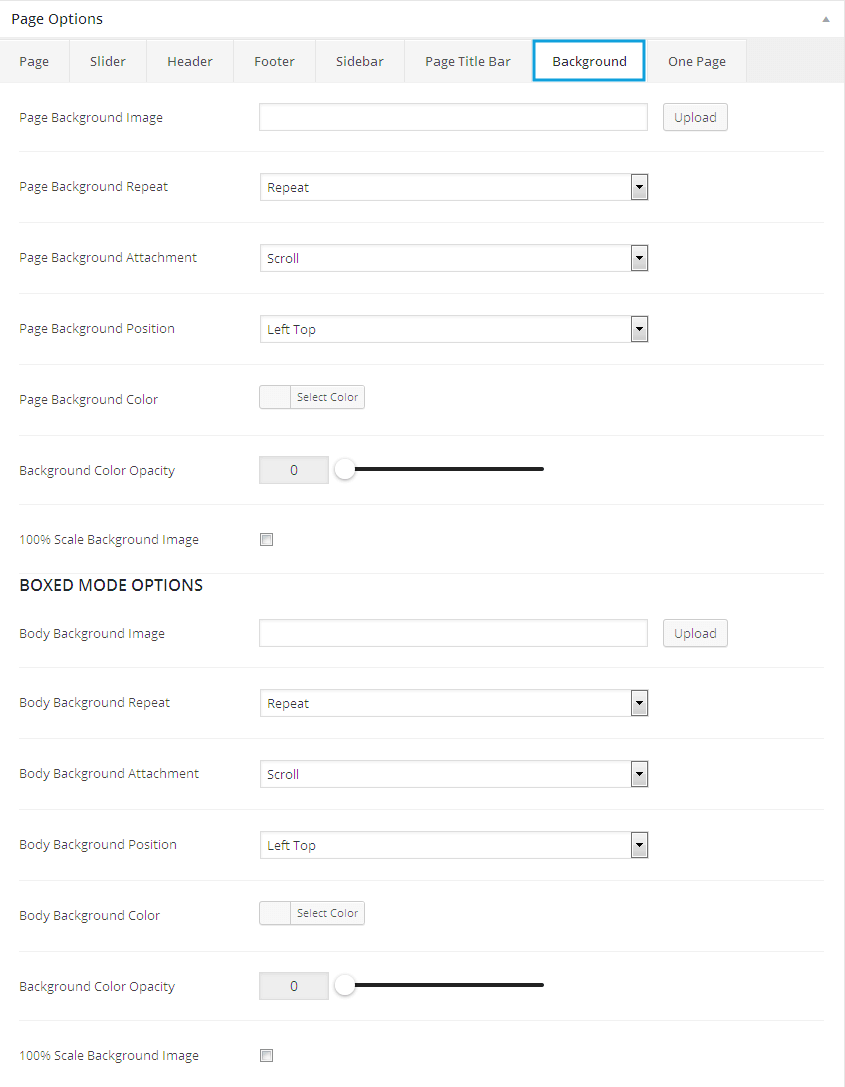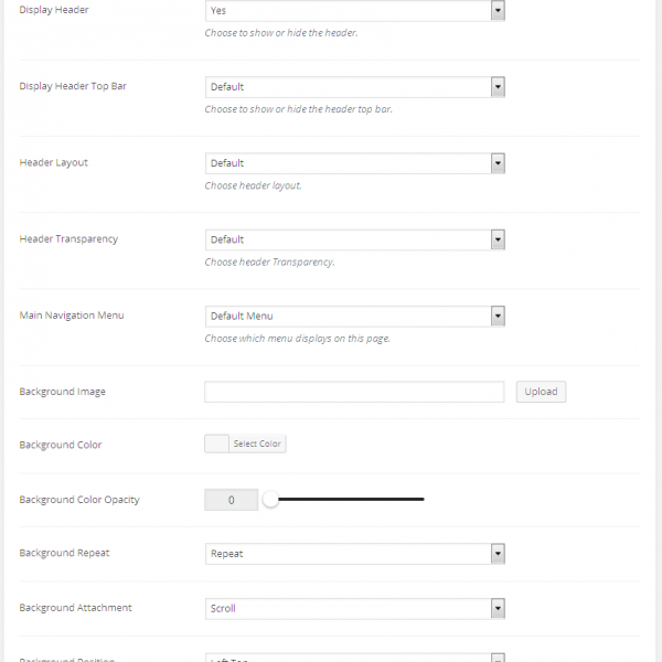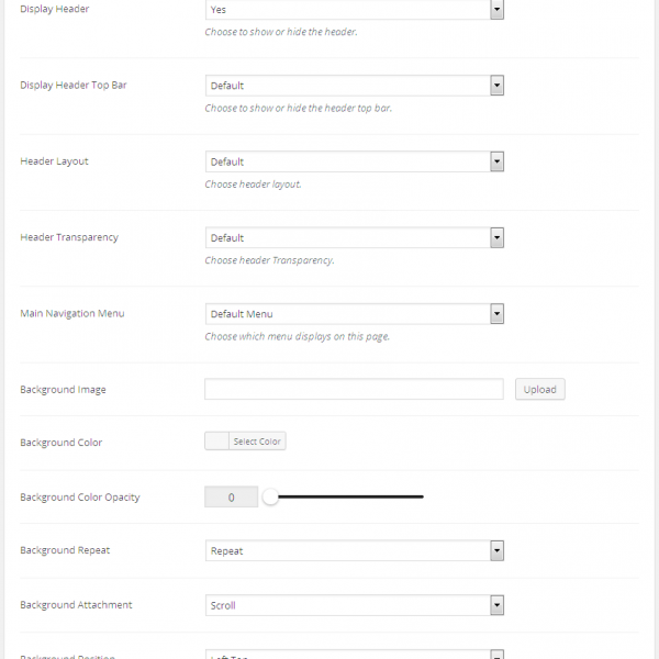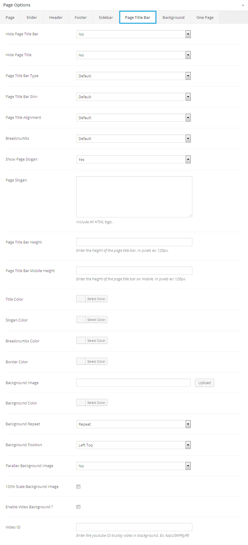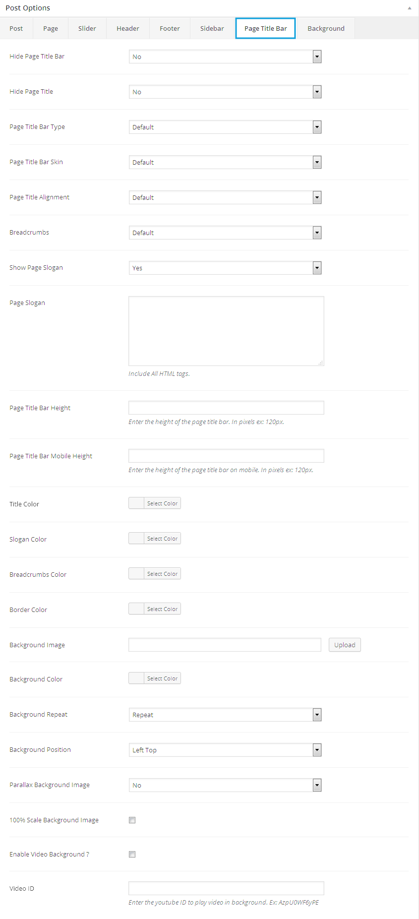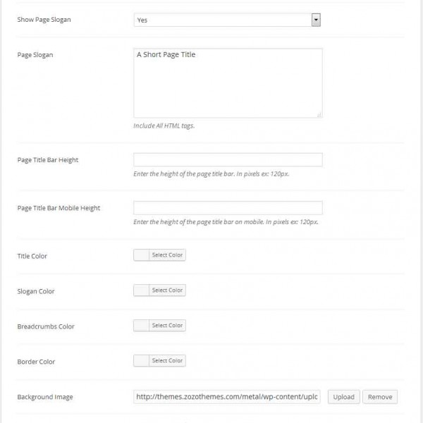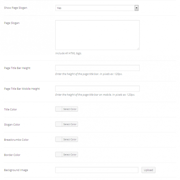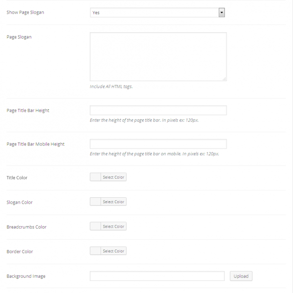 Page Title Bar – These option allows you to enable/disable the page title bar and its background options.