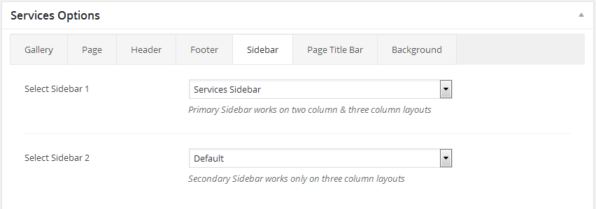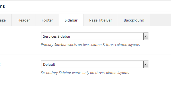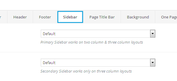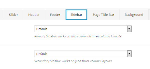 Sidebar – Sidebar options allow you to select the dynamic sidebar for your theme.