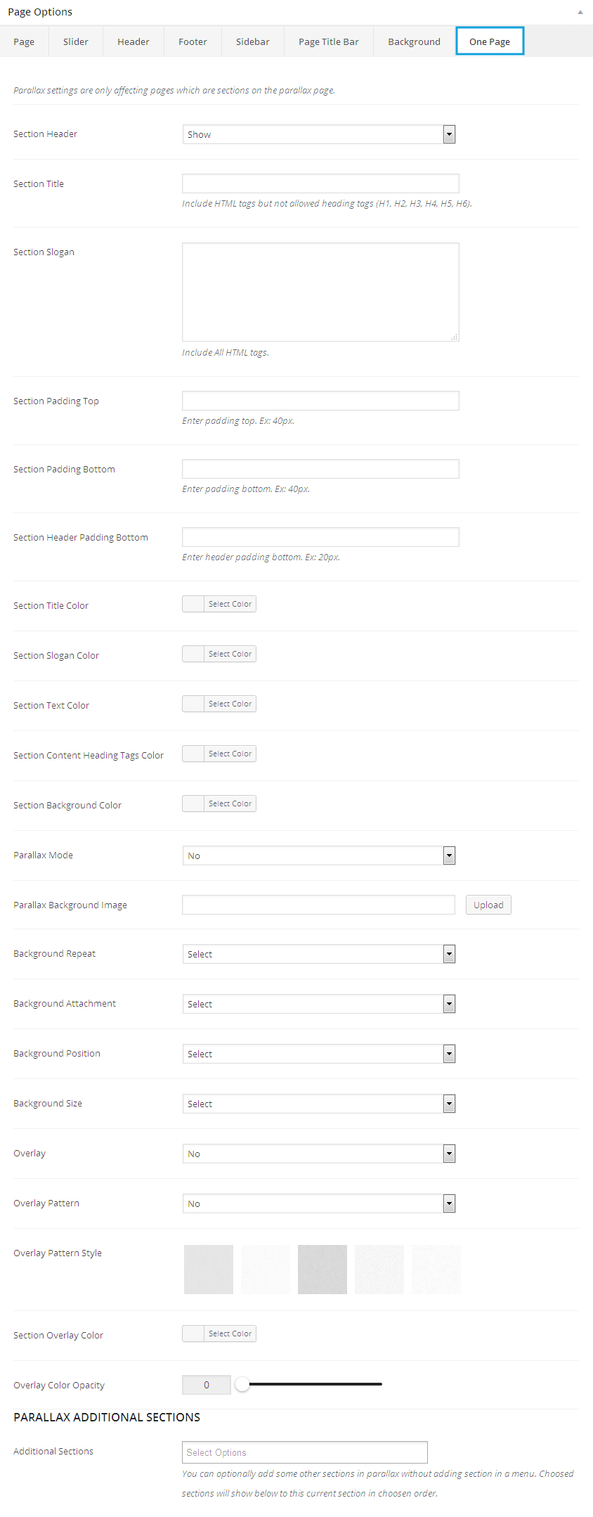 Parallax Mode – This option allows you to set the parallax mode for sections added in one page.