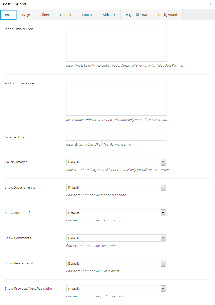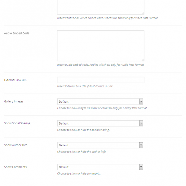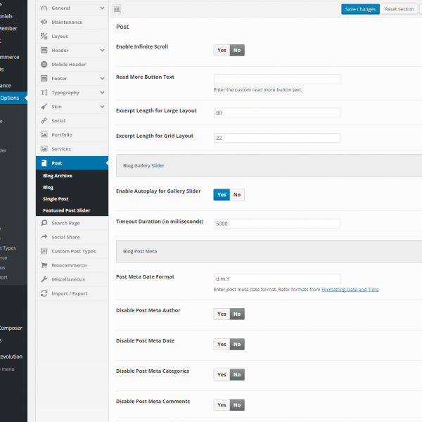 Posts – These options are all applied to your blog archive, blog page, single page, featured post slider.