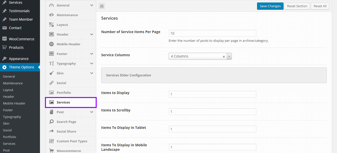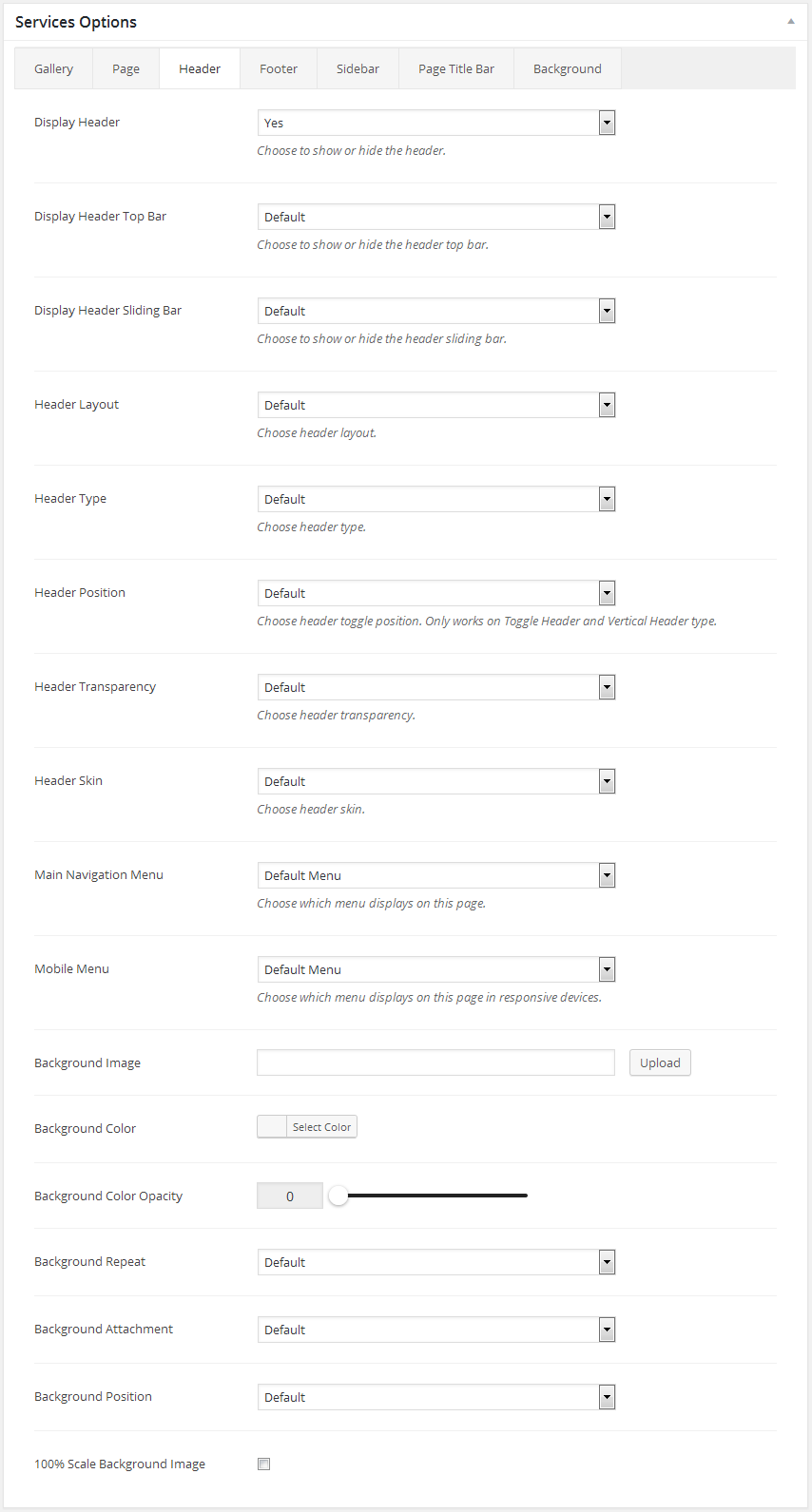 Gallery – These options allow you to add the gallery images for the service custom posts.