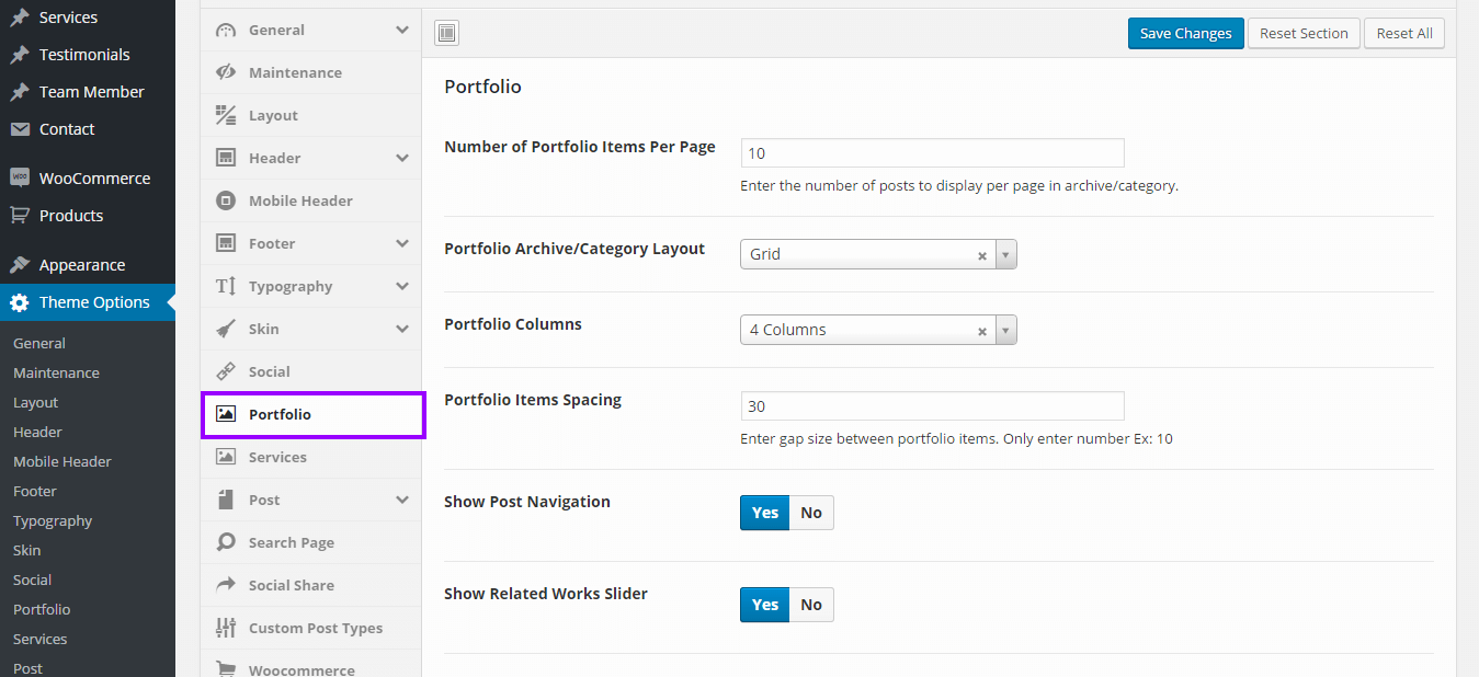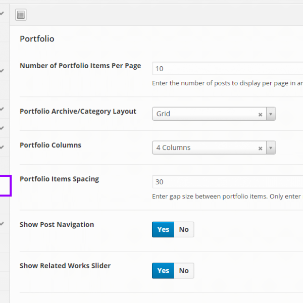 Portfolio – This allows you to customize portfolio display options to your theme.