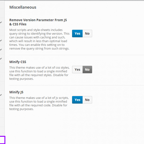 Miscellaneous – These options allows you enable or disable the minify scripts and css files.