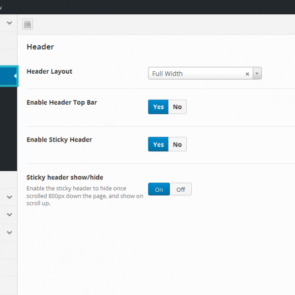 Display Header Top Bar – These options allow you to choose to show or hide the header top bar.