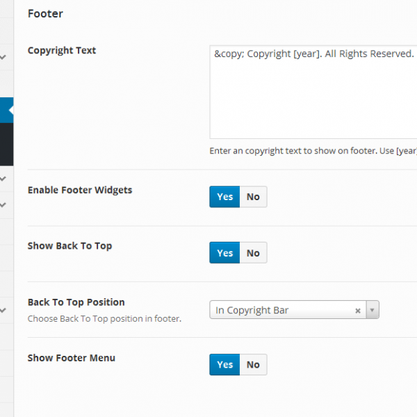 Footer – These options allow you to customize your website’s footer as well as add copyright and footer widget.