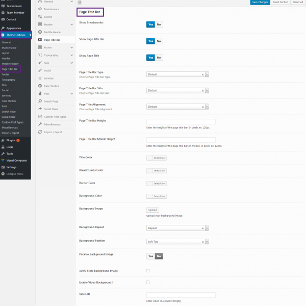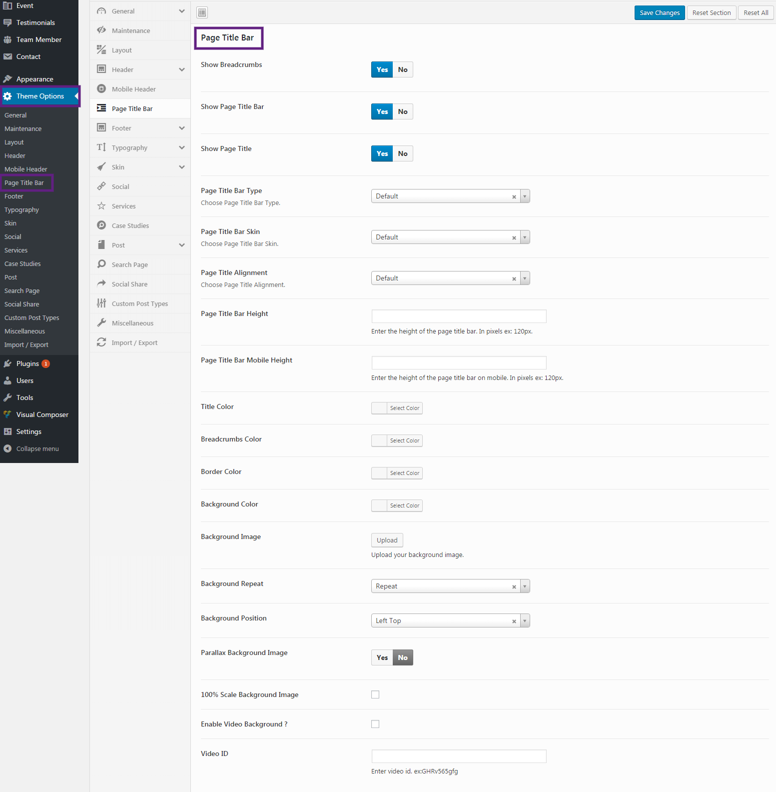 Page Title Bar – You can customize all the options for Page Title Bar.