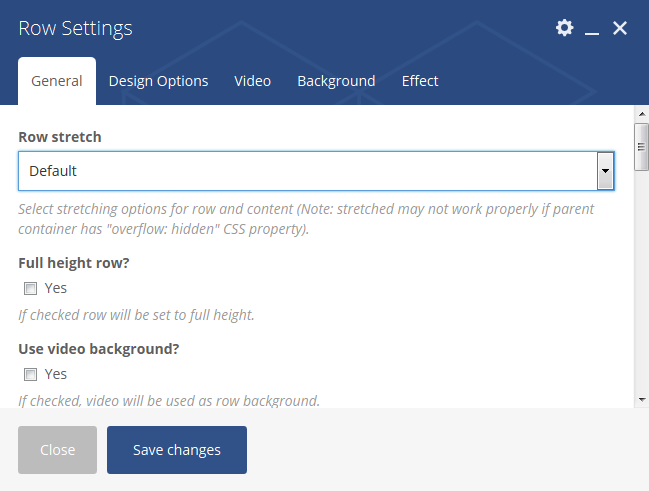 Row stretch – Select stretching options for row and content such as Strech Row, Strech Row and Content, Strech Row and Content(No Paddings).