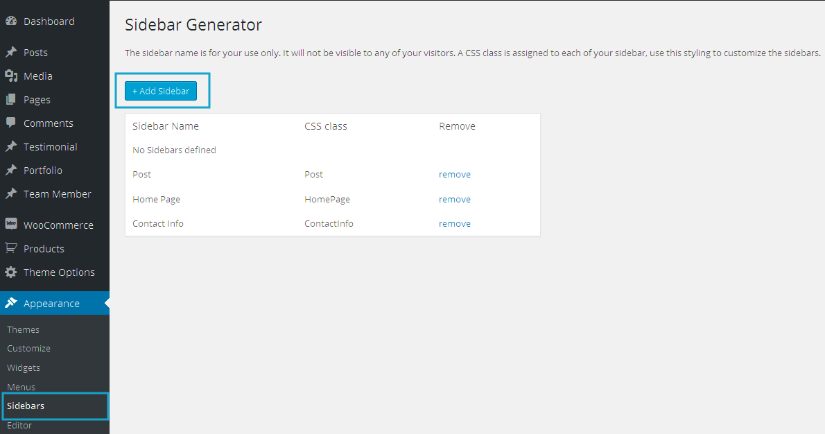 The sidebar name is for your use only. It will not be visible to any of your visitors.