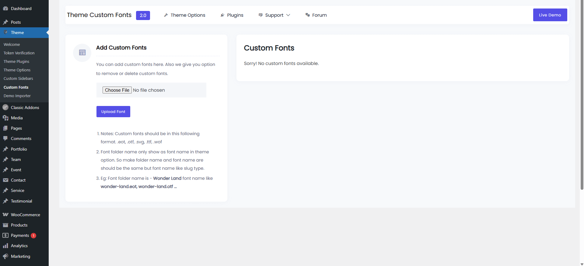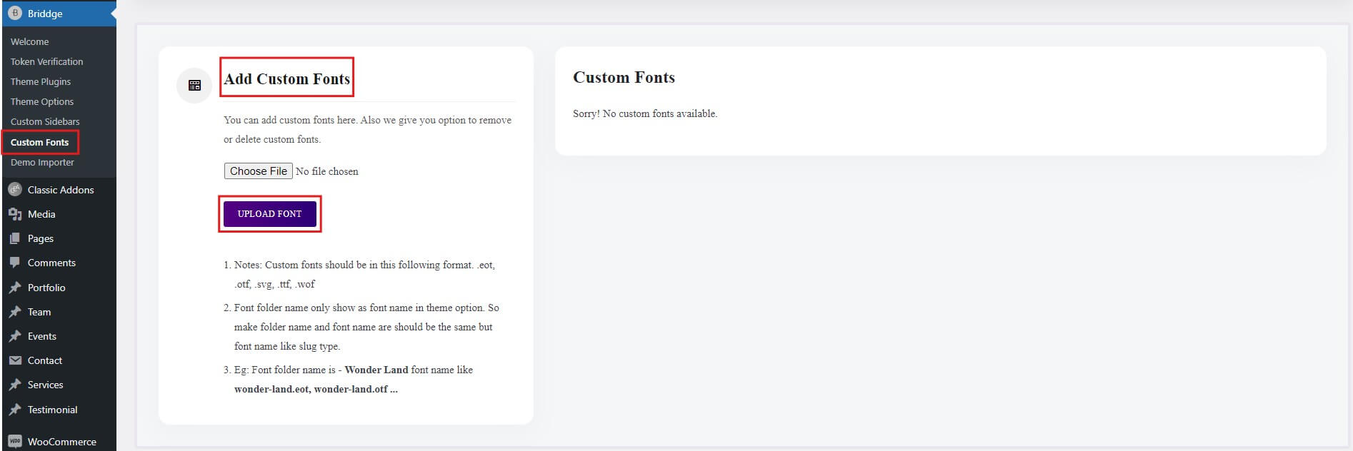 - Custom fonts should be in the following format. .eot, .otf, .svg, .ttf, .wof.