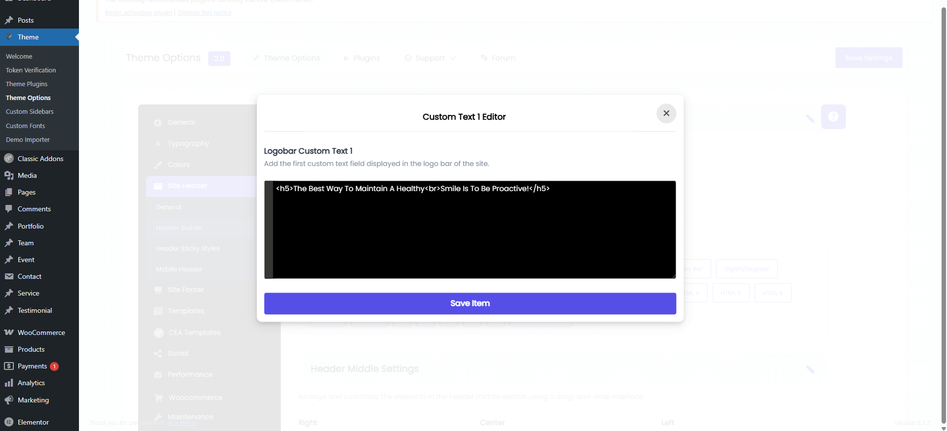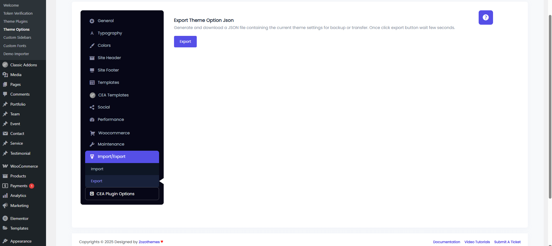 Theme Options Import: