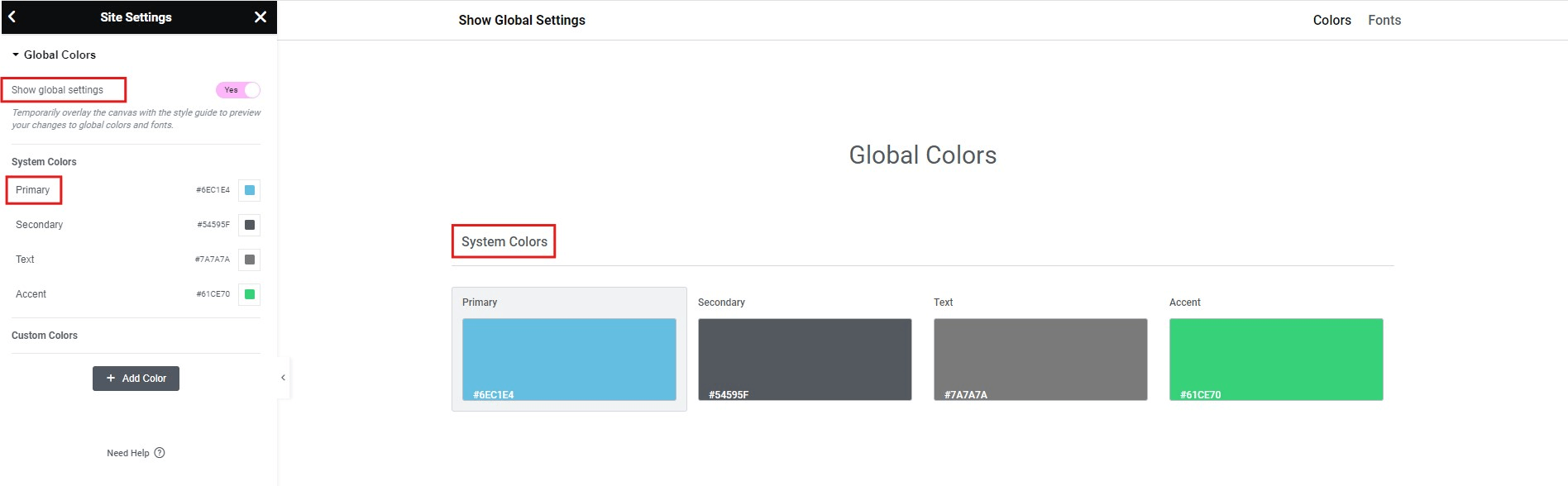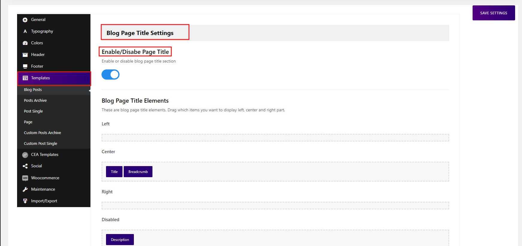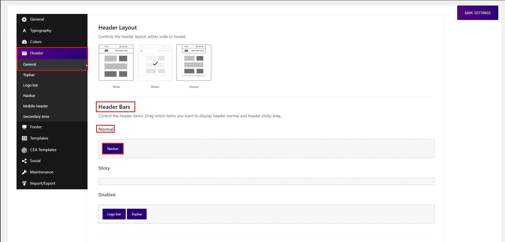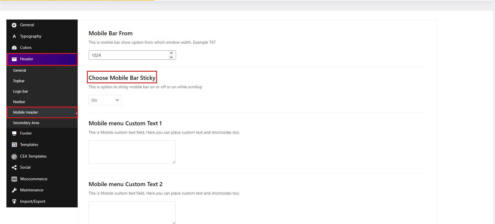 Menus Settings: