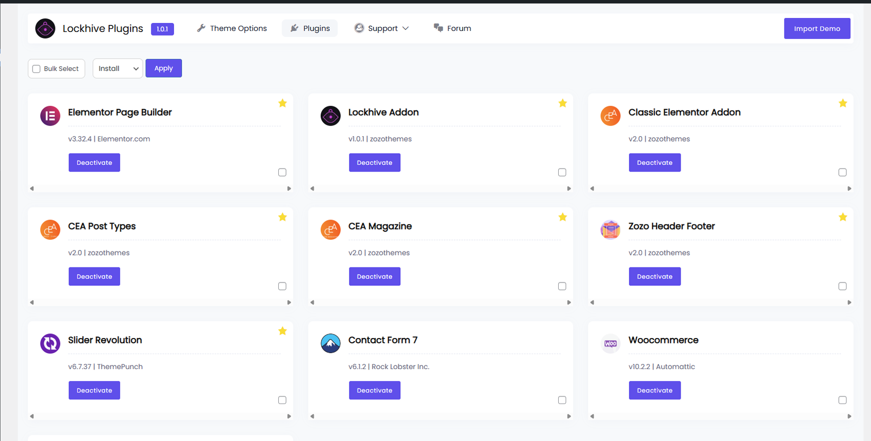 Plugin Installation: Admin Dashboard –>> Lockhive –>> Theme Plugins –>> Install and Activate All required plugins.