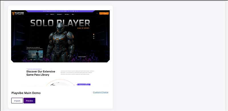 To import the demo go to Theme Panel (WP Dashboard) > Playvibe > Demo Importer.