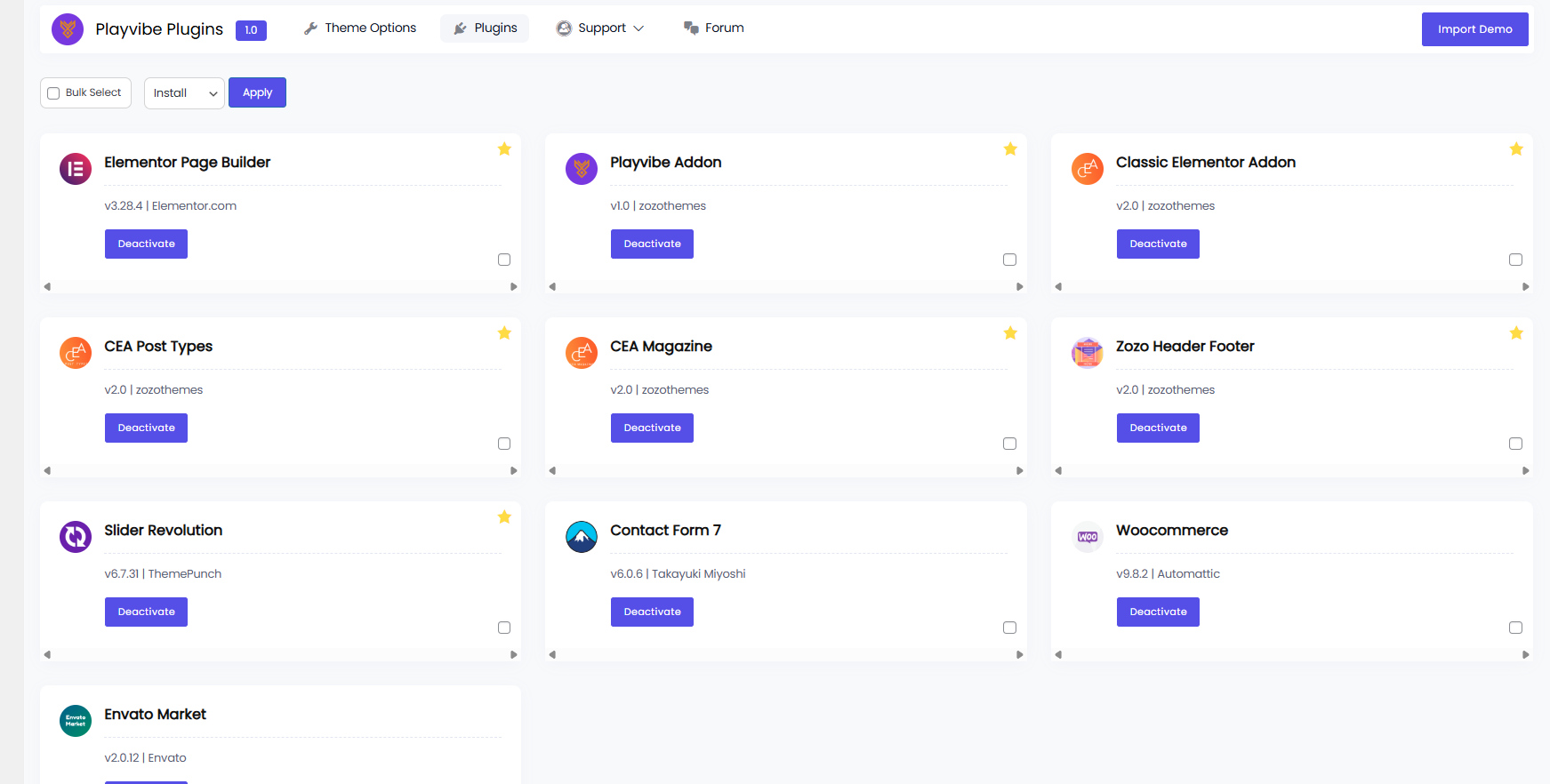 Plugin Installation: Admin Dashboard –>> Playvibe –>> Theme Plugins –>> Install and Activate All required plugins.