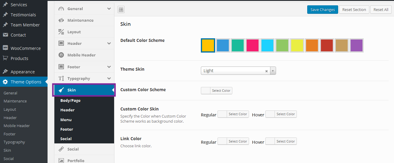 Tranzlogistics has an advanced color settings that organized into Skin tabs. The skin tab having the Default Color Scheme, Theme Skin, Custom Color Scheme, Link Color. You can choose the color schemes for Body, Header, Menu, Footer individually from skin tab. Read the following steps to know in details.