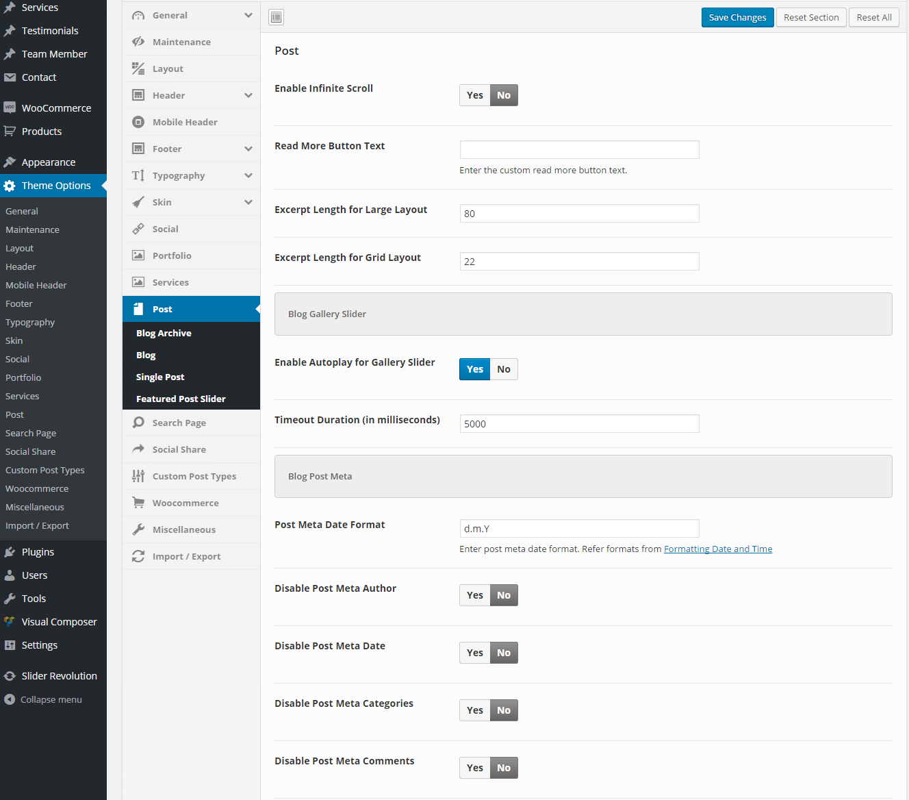 Tranzlogistics has an advanced Post Options panel that organized into sections and each option has a description of what it will do on the front end. You can navigate through each tab to see what we offer. Go to Post Options in your WordPress admin to access the Post Options panel. See below for screenshots and short descriptions of our Post Options panel.