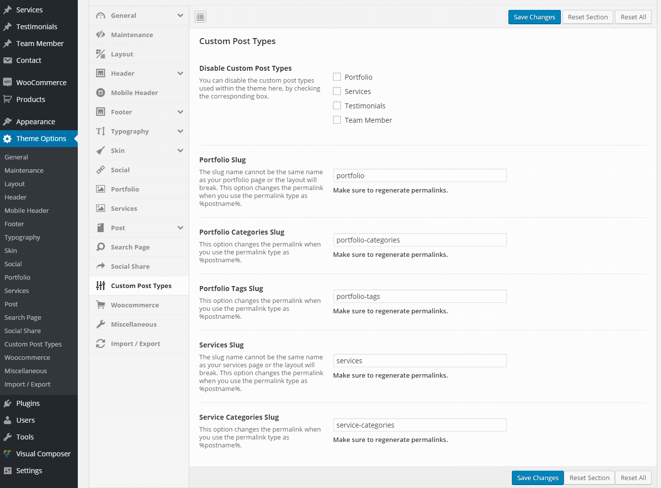 Tranzlogistics has an advanced Team Options panel that organized into sections and each option has a description of what it will do on the front end. You can navigate through each tab to see what we offer. Go to Team Options in your WordPress admin to access the Team Options panel. See below for screenshots and short descriptions of our Team Options panel.