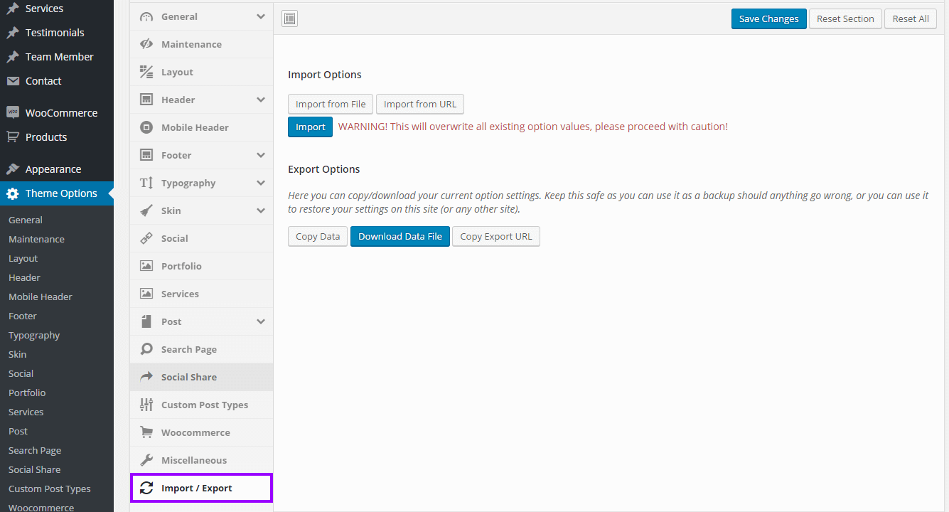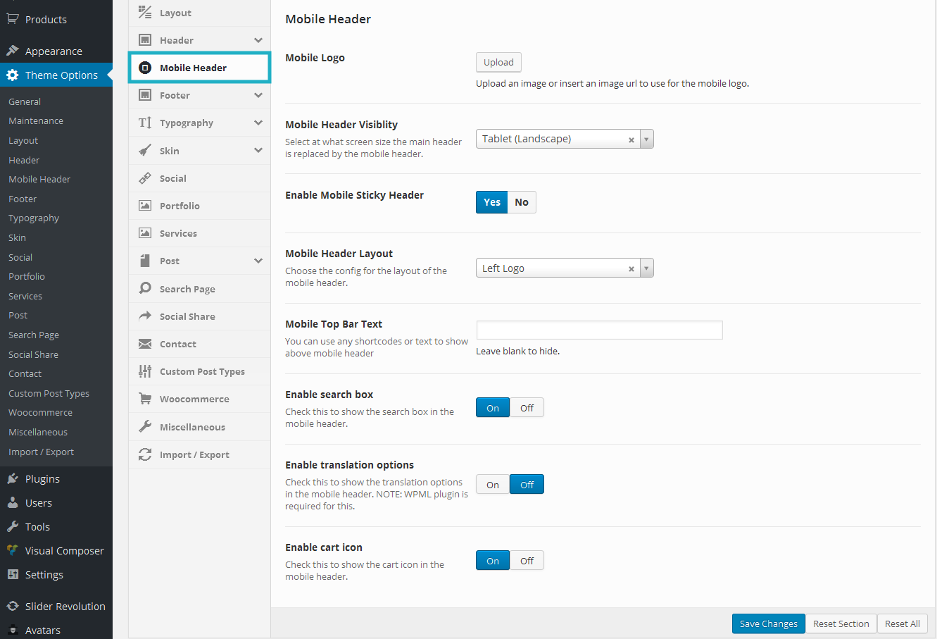 Tranzlogistics is managed through a network of options called Theme Options, Page Options. The Theme Options are located in Tranzlogistics > Theme Options and the theme options organized into tabs. If you want to set more specific options for a particular page or post, you can set them in Page Options, which is located in every page or post.