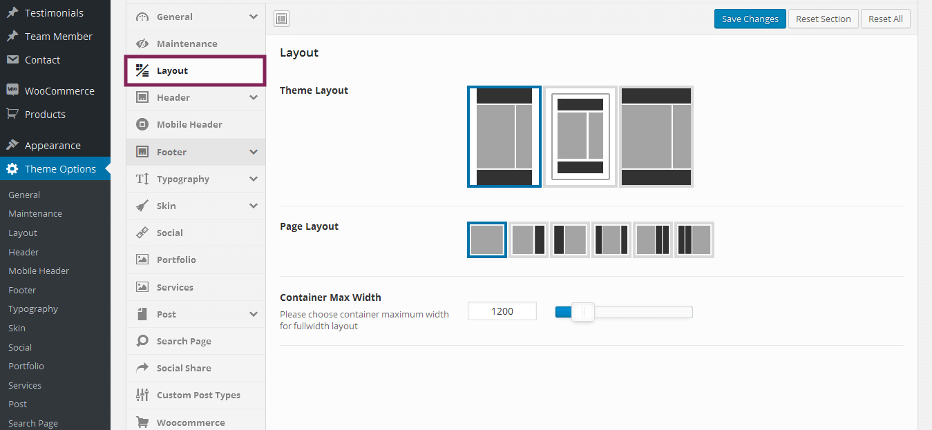 Site Width option where you can set your site to display in 100% browser width, or your own width. Site Width as container max width is located under Theme Options > Layout > Container Max Width. Read the below steps to select the layout and width for your site.