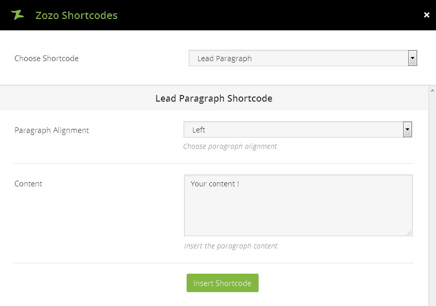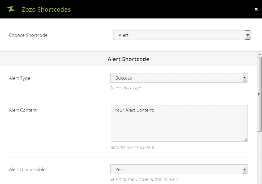 Below showing a complete list of all the shortcodes included in our theme and having customization options for each one. The following list of shortcodes arranged same list you see in the visual editor, under the Shortcode Generator.